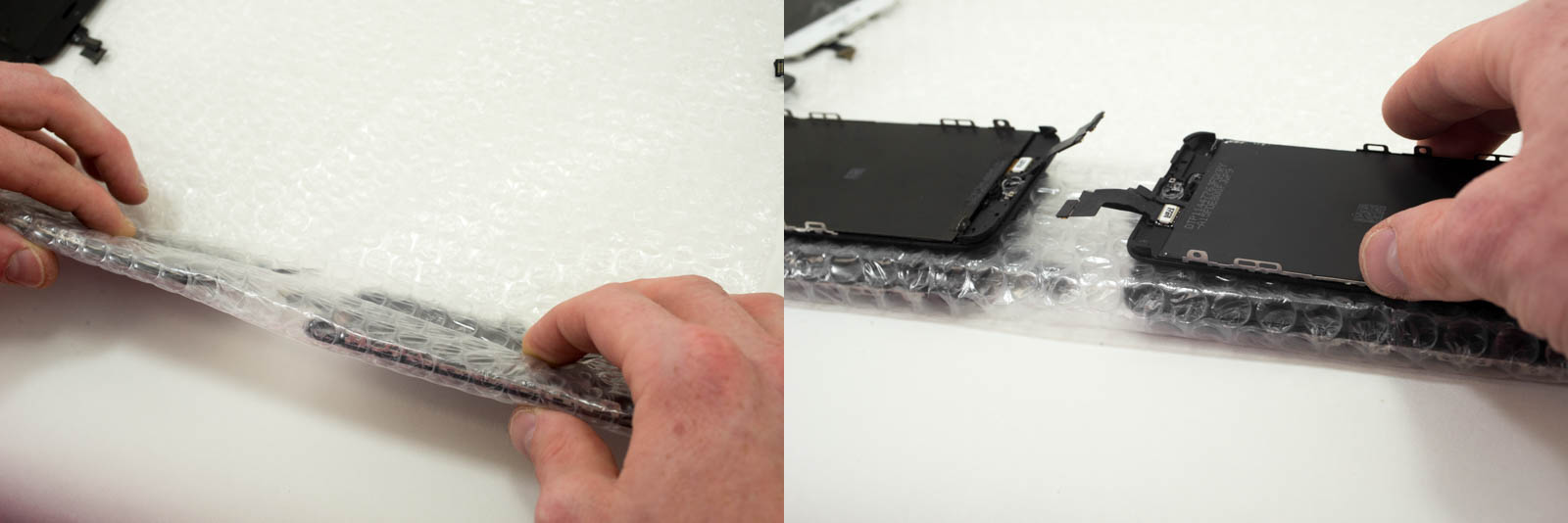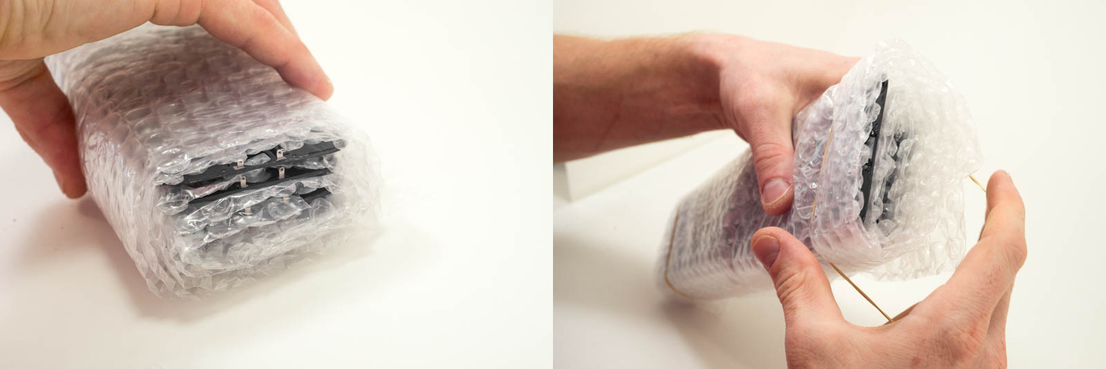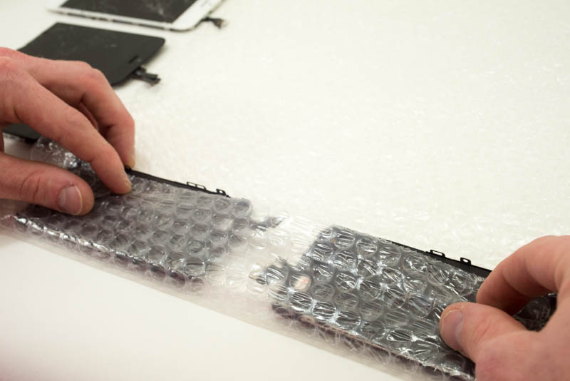 1. Insérez les écrans dans les sachets, en prenant garde à ne pas plier les nappes.